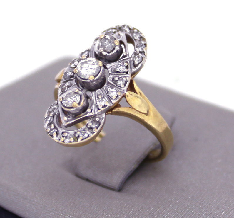 10K Yellow Gold Diamond Art Deco Ring (sz 4 3/4)